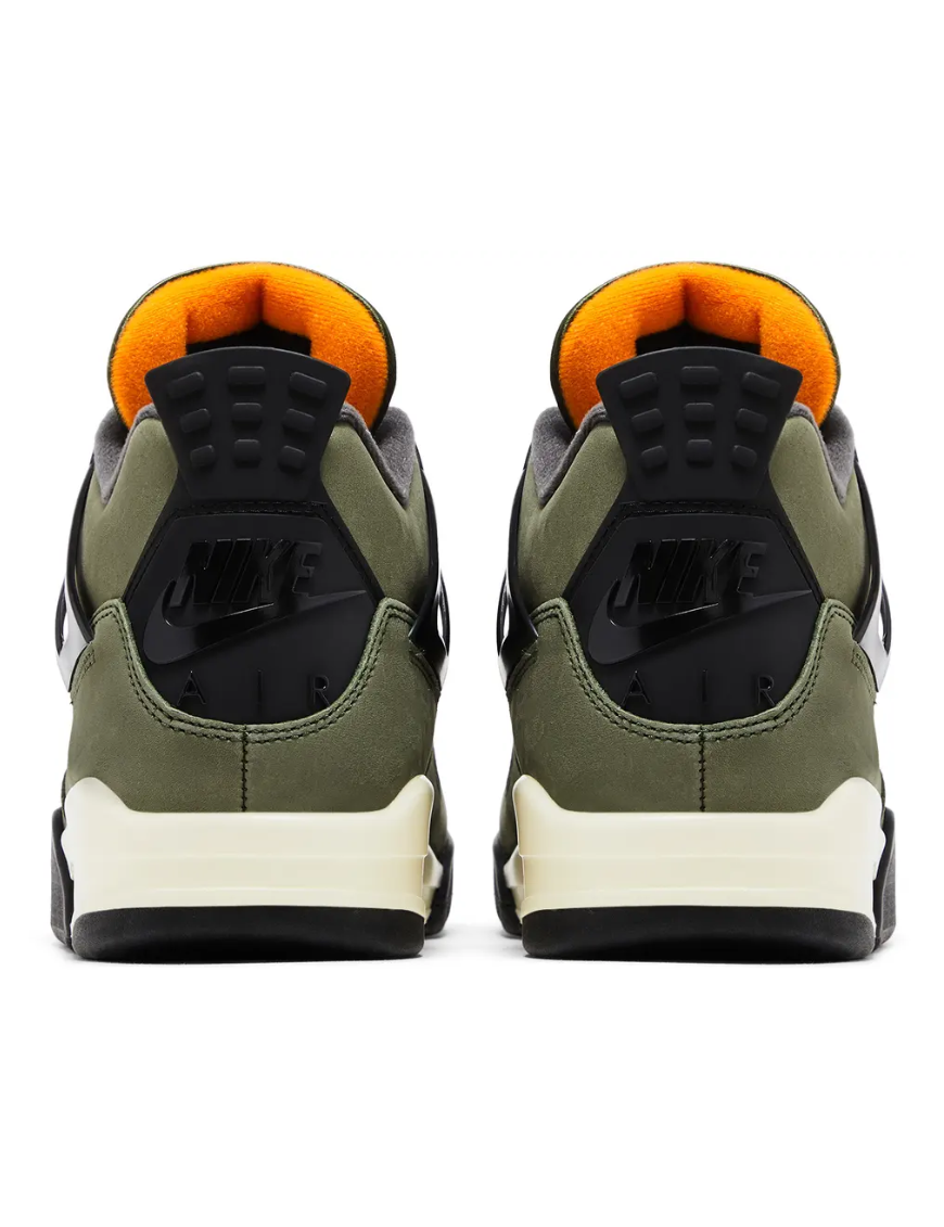 Air Jordan 4 Retro OG Undefeated 2025 to wyjątkowe wydanie kultowego modelu Jordana, które bezpośrednio nawiązuje do jednej z najbardziej pożądanych kolaboracji w historii sneakerów. Projekt utrzymany jest w charakterystycznej kolorystyce – oliwkowej zieleni przełamanej kontrastującymi pomarańczowymi akcentami i czarnymi detalami, które nadają mu surowy, militarny charakter.